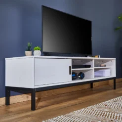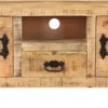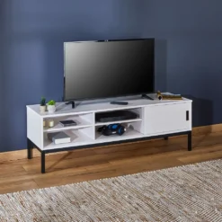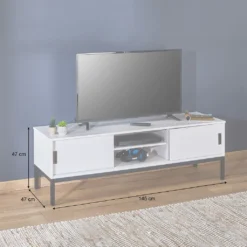 Lowboard TV Möbel SELMA, Fernsehtisch Fernsehschrank Im Industrial Design Mit 2 Schiebetüren 1 Offenes Fach, Kiefer Massiv, Weiß