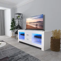 Lowboard TV Möbel SELMA, Fernsehtisch Fernsehschrank Im Industrial Design Mit 2 Schiebetüren 1 Offenes Fach, Kiefer Massiv, Weiß