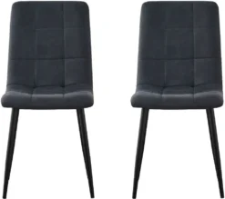 MCCDirect Esszimmerstuhl Henri Im 2er Set Aus Kunstvelourleder Mit Metallbeinen, Designerstuhl, Küchenstuhl, In 4 Farben Erhältlich (Schwarz)