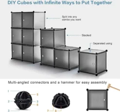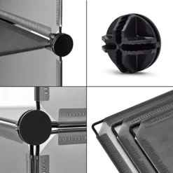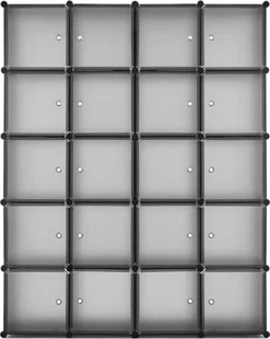Meerveil Kunststoff Kleiderschrank Garderobenschrank Steckregal DIY Modular Schrank Regalsystem Mit 2 Kleiderstange (Halbtransparent Grau, 20-Kubus)