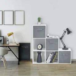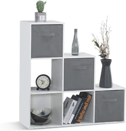 Meerveil Treppenregal, Bücherregal 6 Fächer Spanplatte Modern Für Wohnzimmer Arbeitszimmer Büro,90,5 X 90,5 X 29 Cm, Weiß