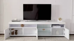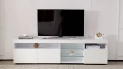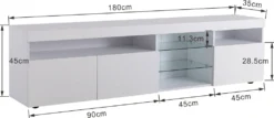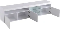 Merax LED TV-Lowboard Weiß Hochglanz Mit LED-Beleuchtung Inkl. Fernbedienung, TV Schrank TV-Schränke Fernsehtisch 180cm Wohnzimmerschränke