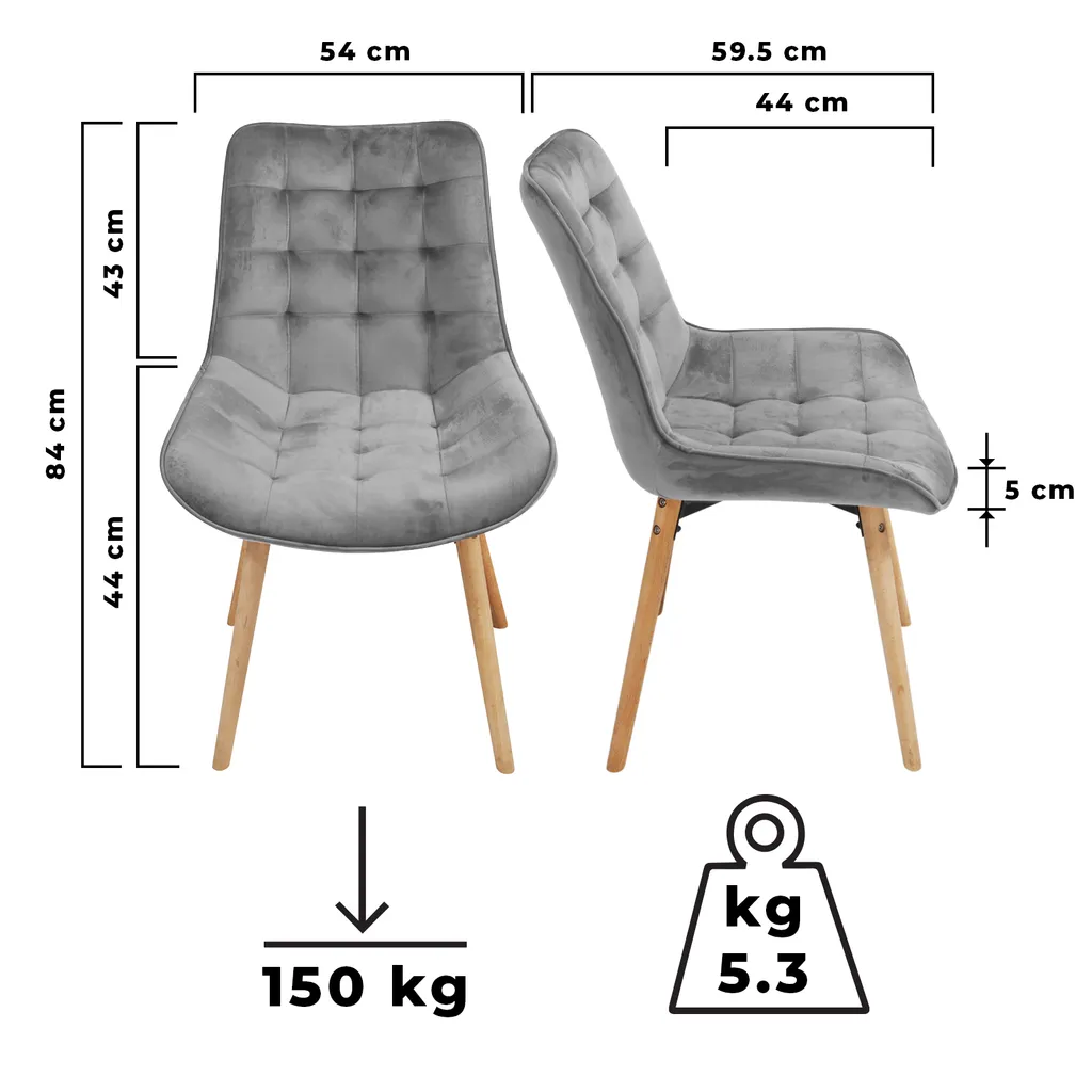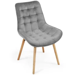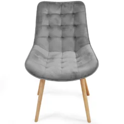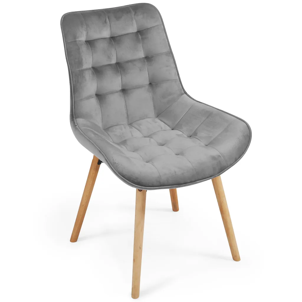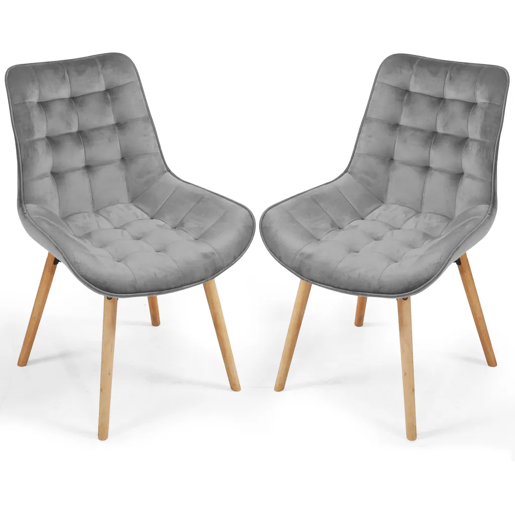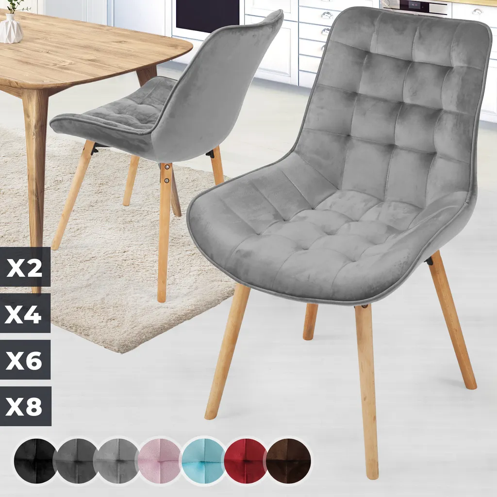 MIADOMODO® Esszimmerstühle – Farbwahl, 2/4/6/8 Set, Sitzfläche Aus Samt, Gepolstert, Gesteppt, Beine Aus Buchenholz, Mit Rückenlehne – Polsterstuhl, Vintage Küchenstuhl, Retrostuhl, Wohnzimmerstuhl (2er Set, Hellgrau)
