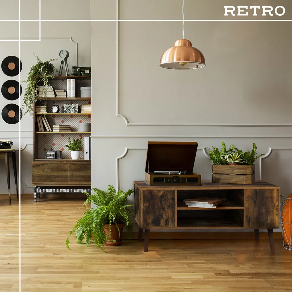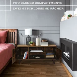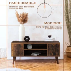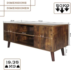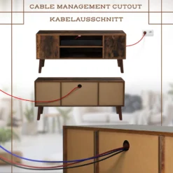 MIADOMODO® Lowboard Fernsehschrank – 110 X 50 X 40cm, Für TV 65 Zoll, Für Wohnzimmer, Kabelöffnung, Dunkelbraun – Vintage TV-Schrank, TV-Regal, Sideboard, Fernsehtisch, TV Tisch, TV Möbel