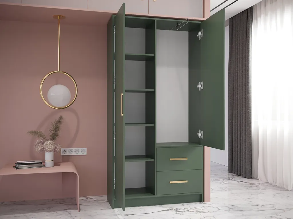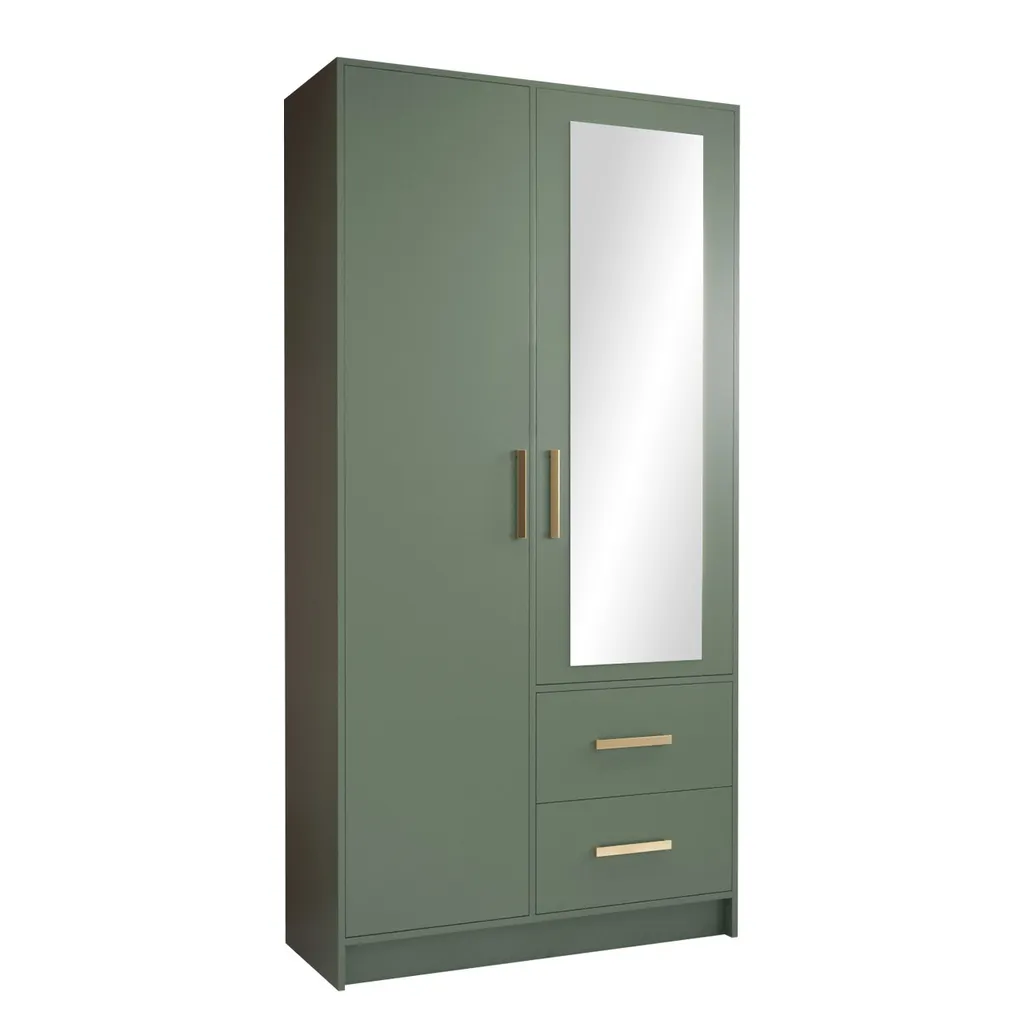Mirjan24 Kleiderschrank Berlin 103, Drehtürenschrank Mit Spiegel, Modern Schlafzimmerschrank (Farbe: Grün + Gold Griffe)