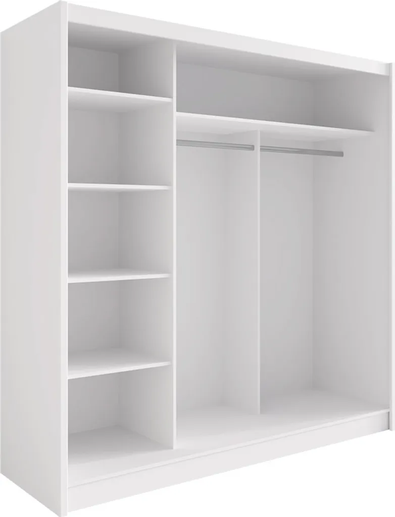 Mirjan24 Schiebetürenschrank Aris I, Kleiderschrank Mit Frontspiegel, Garderobenschrank (Farbe: Weiß / Weiß + Spiegel)