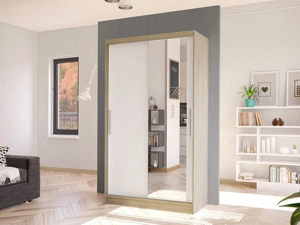 Mirjan24 Schiebetürenschrank Costa VI, Kleiderschrank, Stilvoll Schlafzimmer Garderobenschrank (Farbe: Sonoma Eiche / Weiß)