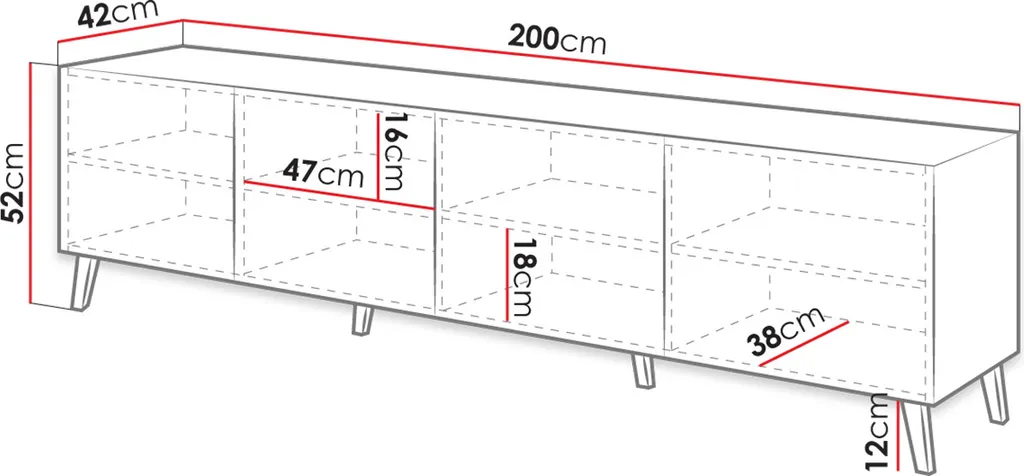 Mirjan24 TV-Lowboard Abeto 200, TV-Tisch Mit 4 Türen, Wohnzimmer TV-Kommode, Stilvoll Kolektion (Farbe: Schwarz / Schwarz Hochglanz)