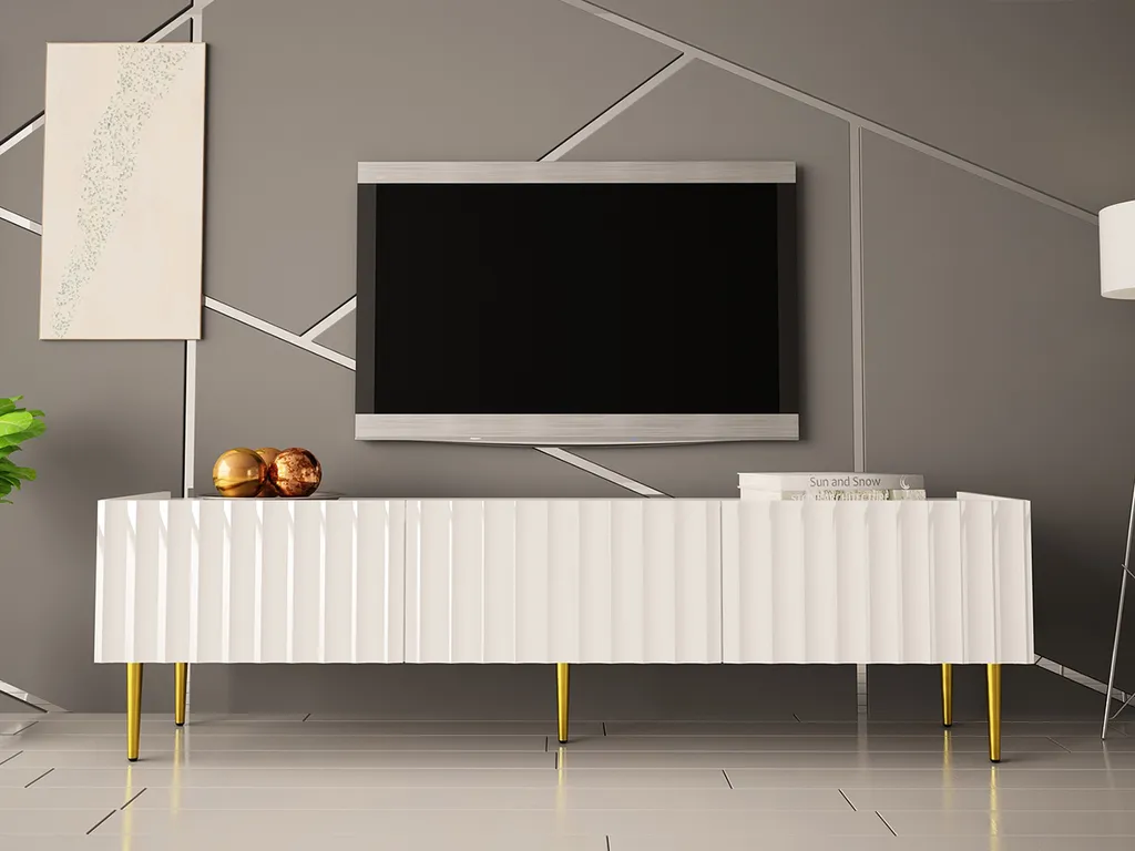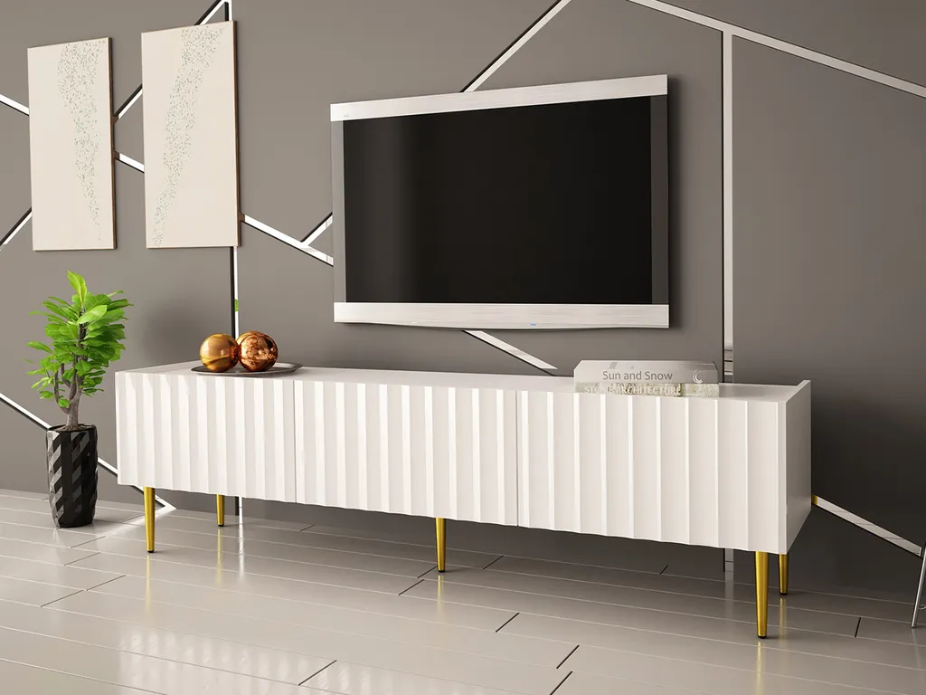 Mirjan24 TV-Lowboard Arcos 180, Stilvoll TV-Tisch, Glamour RTV-Schrank, Design Kollektion (Farbe: Weiß / Weiß Hochglanz)