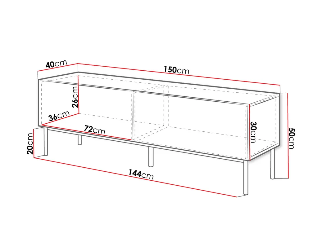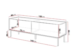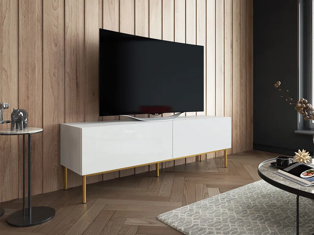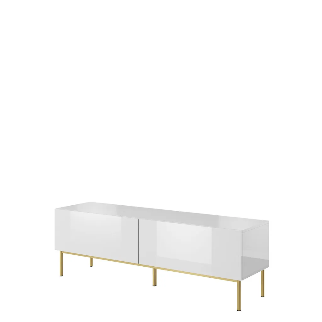 Mirjan24 TV-Lowboard Slide 150 Mit Untergestell, Fernsehschrank, Wohnzimmer TV-Shrank (Farbe: Weiß / Weiß Hochglanz + Gold)