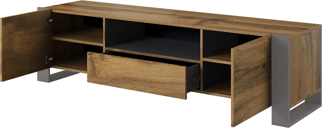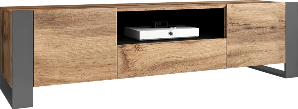 Mirjan24 TV-Lowboard Wood, RTV-Schrank Vom Hersteller, TV-Möbel, Wohnzimmer Stilvoll Füße (Farbe: Wotan / Anthrazit)