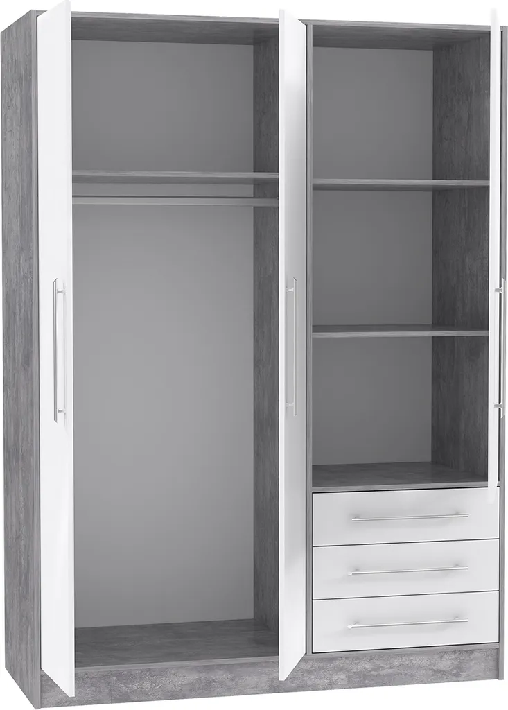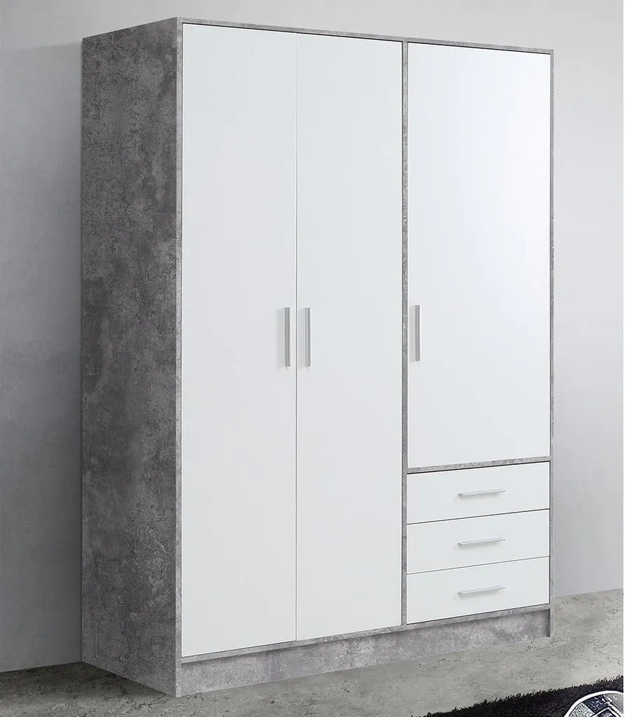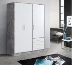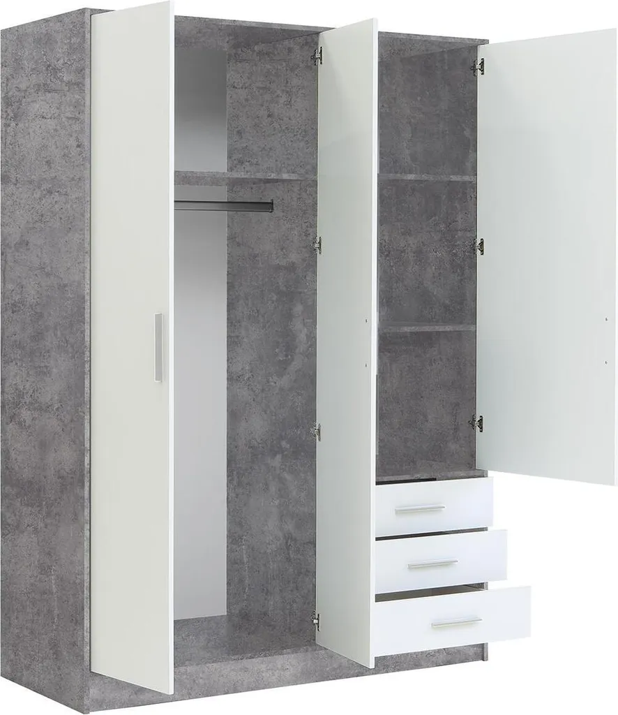 Möbelando Kleiderschrank Schlafzimmerschrank Holzschrank Schrank Schlafzimmer Babbette I Beton/Weiß