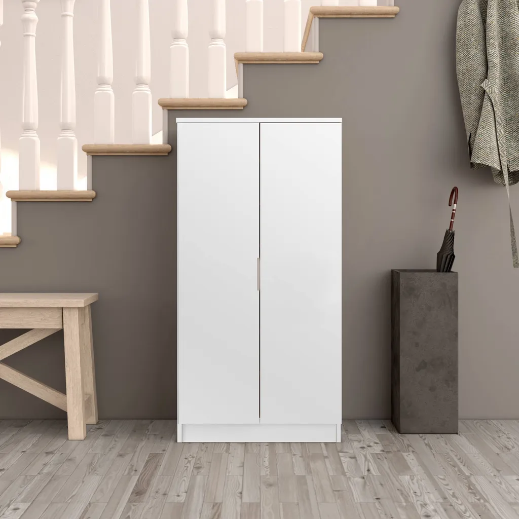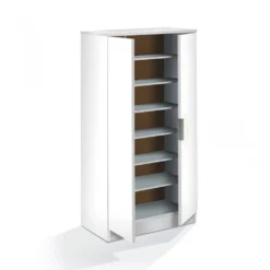 Multifunktions-Kleiderschrank Mit Zwei Türen Mit Sechs Einlegeböden, Farbe Weiß, Maße 55 X 108 X 36 Cm