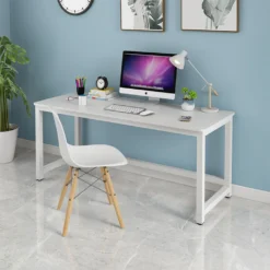 Rechteckiger Bürotisch 120x60cm Holz Metall Modern Weiß Bridgewhite 120Farbe: Weiß, Höhe (cm): 74, Breite (cm): 120, Tiefe (cm): 60, Zusammensetzung: WOOD, METAL, Länge (cm): 60