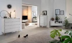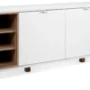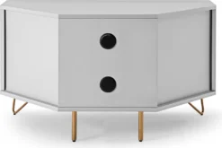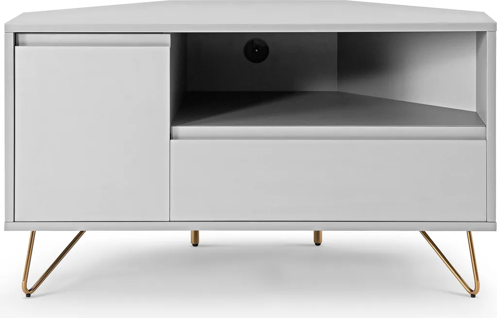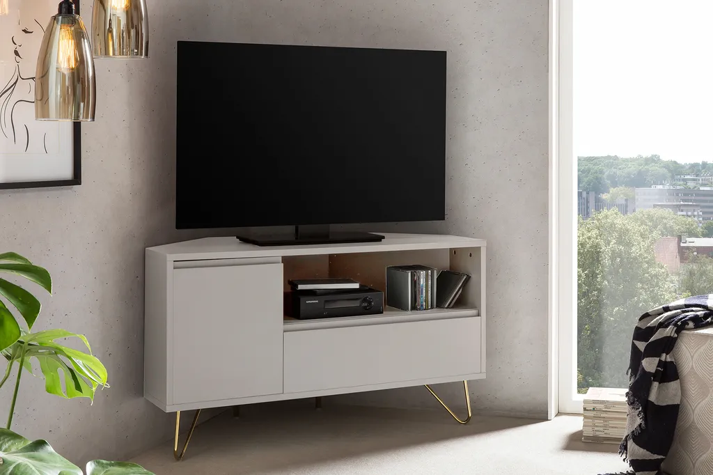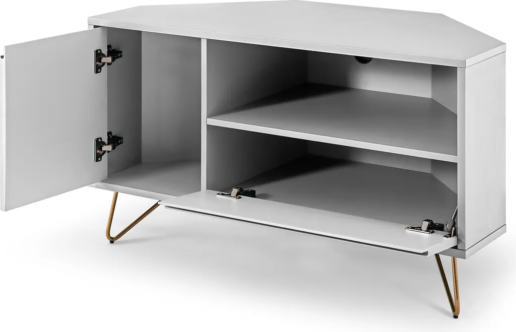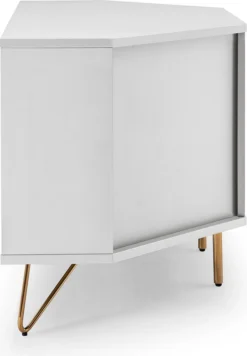 SalesFever Eck TV-Lowboard Aus MDF | Mit Tür, Klappfach Und Offenem Fach | Beine Metall Mit Messinglegierung | B 100 X T 50 X H 58 Cm | Weiß