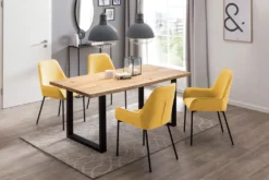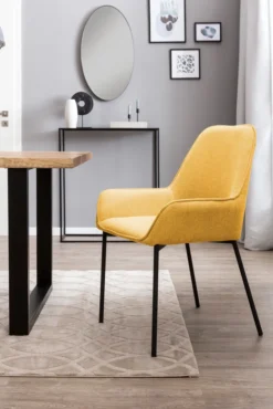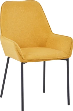 SalesFever Polsterstuhl 2er Set | Armlehnstuhl Mit Strukturstoff | Gestell Metall Schwarz Matt | B 56 X T 54 X H 90 Cm | Senfgelb