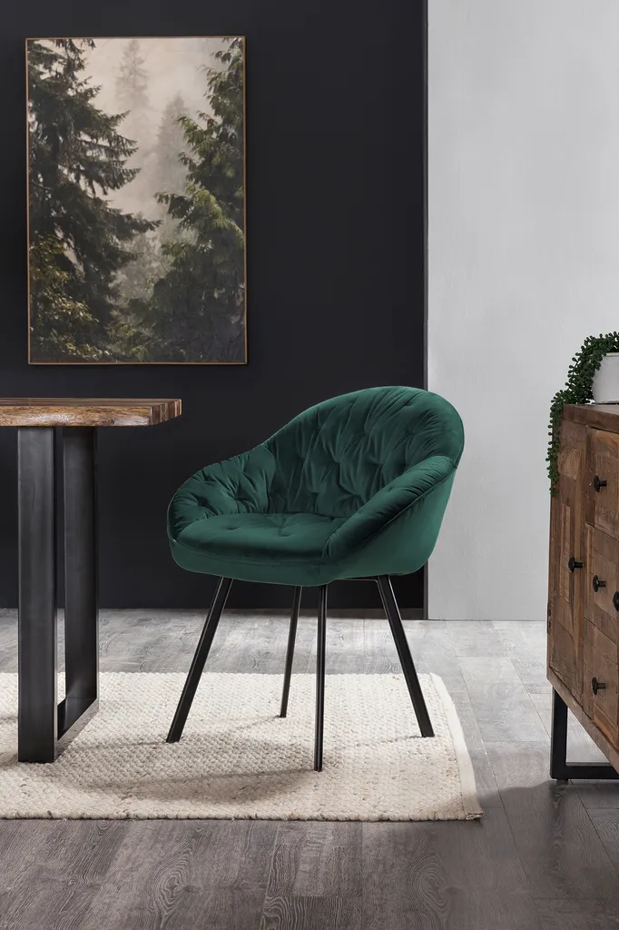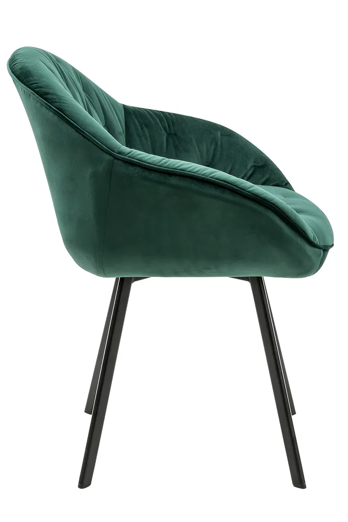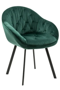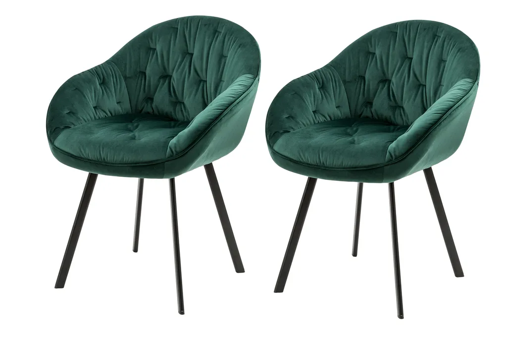 SalesFever Polsterstuhl 2er Set Mit Armlehnen | Stoffbezug In Samt-Optik | Gestell Metall Schwarz | Diamantsteppung | B 62 X T 66 X H 83 Cm | Grün