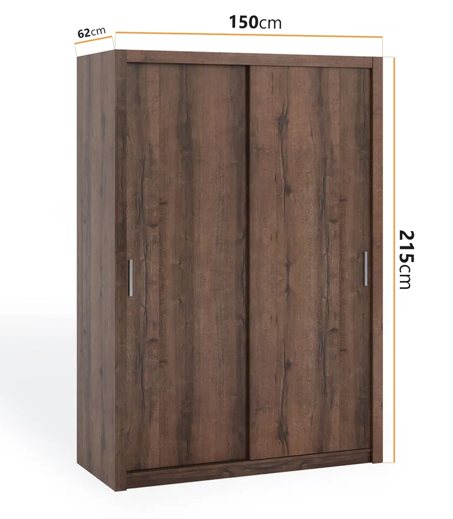 Schiebetürenschrank Zenit 150 Cm, Kleiderschrank, Stilvoll Schlafzimmerschrank (Farbe: Monastery Eiche, Ohne Spiegel)