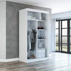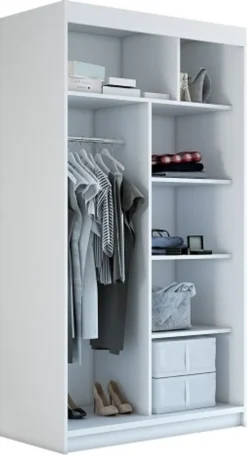Schwebetürenschrank, 2-türig Schrank Mit Spiegel! Moderne Garderobe Für Kleidung. Verschiedene Farben (Weiß, Schwarz, Somona) Kleiderschrank VIGO 120 Cm