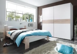 Schwebetürenschrank Kleiderschrank Schiebetürenschrank Schrank „Noni I“ Weiß / Absetzung Sonoma-Eiche