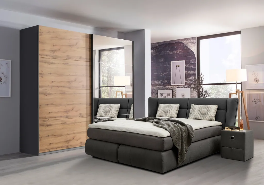 Kleiderschrank Drehtürenschrank Schlafzimmerschrank Schrank Schlafen „Drugi II“ Plankeneiche/Graphit
