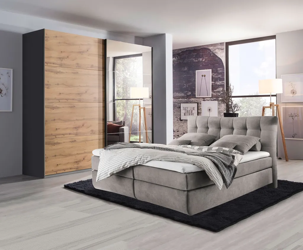 Schwebetürenschrank – Wotan EicheNachbildung – Grau Metallic – 226 X 210 Cm – Mit Spiegel