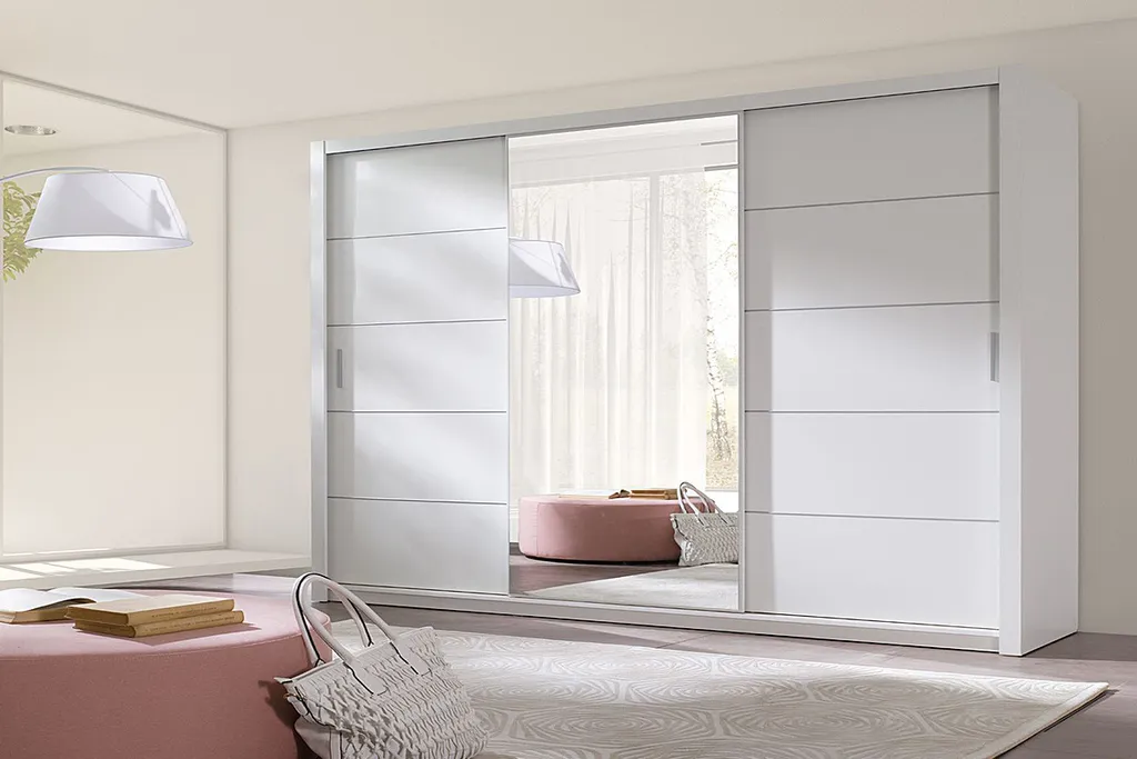 Selsey – Schwebetürenschrank ORDU 250 Cm Mit Spiegel, In Weiß