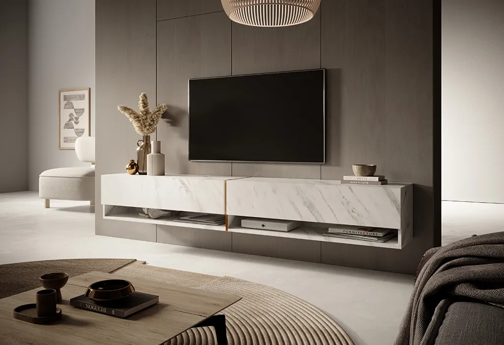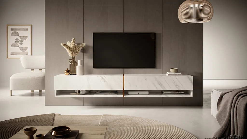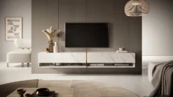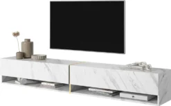 Selsey TV-Lowboard Mirrgo Weiß Marmor Mit Goldene Einsätzen, 200 Cm Breit