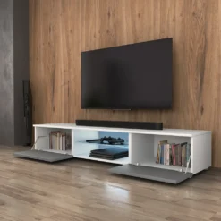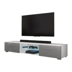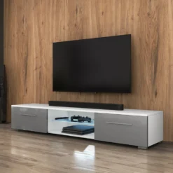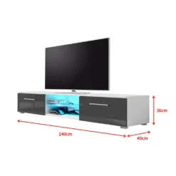 Selsey TV-Lowboard SYVIS Korpus In Weiß Matt Fronten In Grau Hochglanz Mit LED-Beleuchtung In Blau 140 Cm