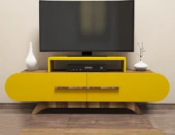 Skye Decor, Rose- Rose VCQ, Nussbaumfarbe,,Gelb, TV-SchrÀnke, 49,8x145x36,8 Cm, 100% Melaminbeschichtete Partikelplatte
