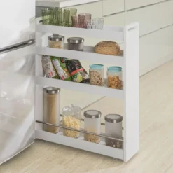 SoBuy Flaschenregal Nischenregal Gewürzregale Mit Rollen Tiefe 18 Cm, NSR01-W