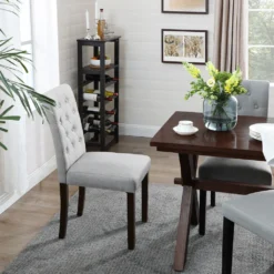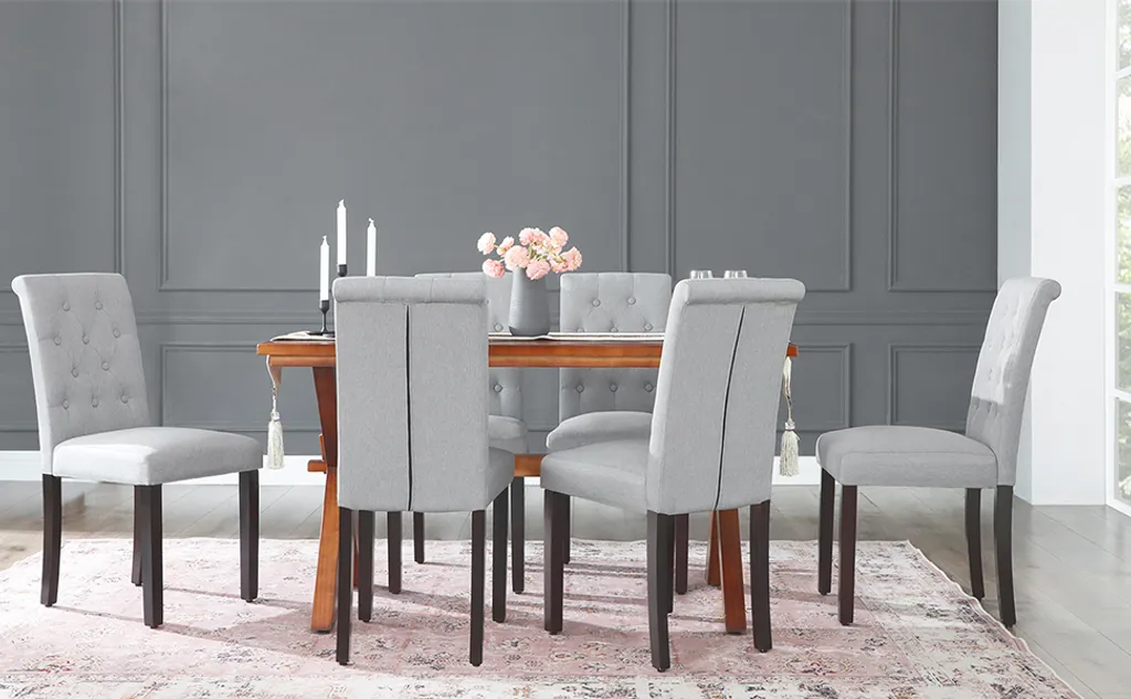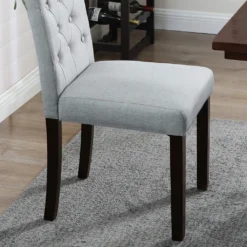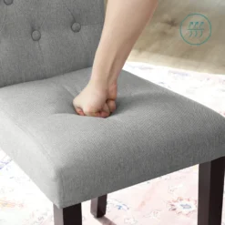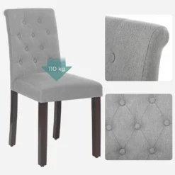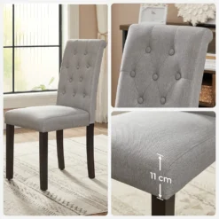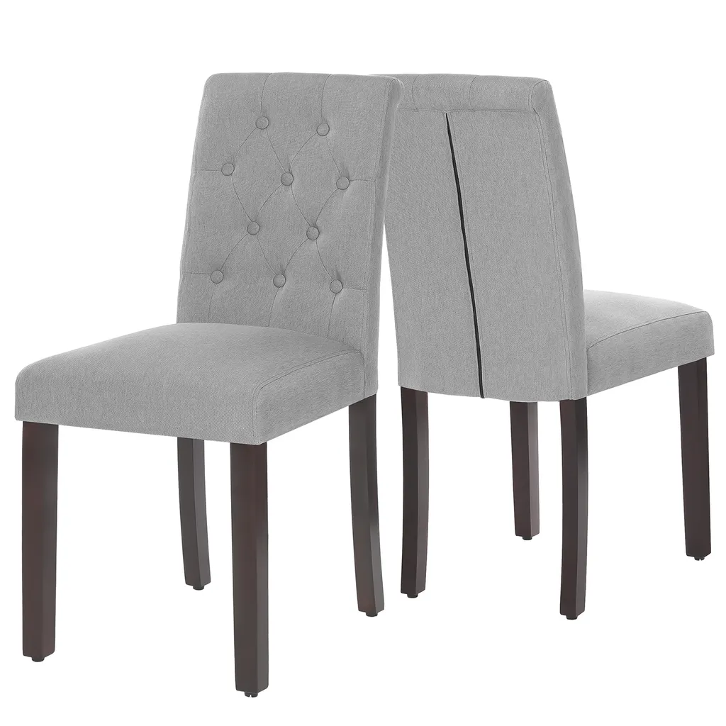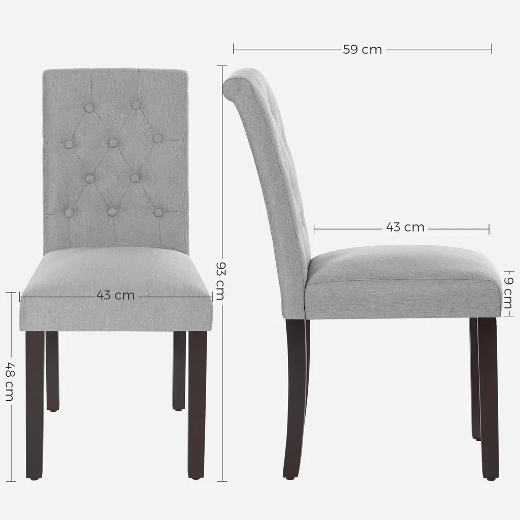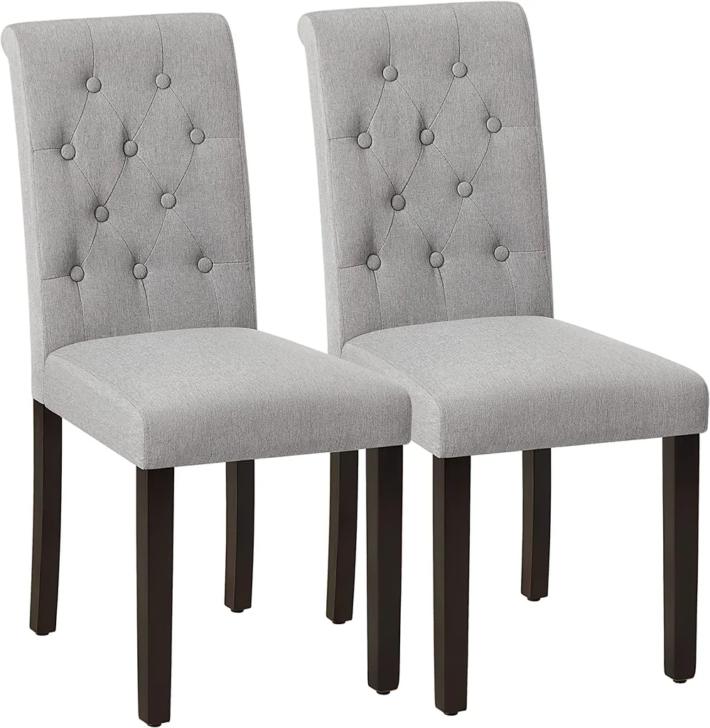 SONGMICS 2er Set Esszimmerstühle, Küchenstühle, Polsterstühle, Beine Aus Massivholz, Hohe Rückenlehne, Bezug Aus Baumwoll-Leinen-Mischgewebe, Hellgrau LDC027G01
