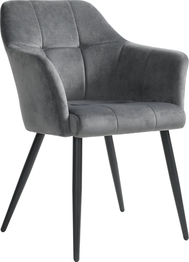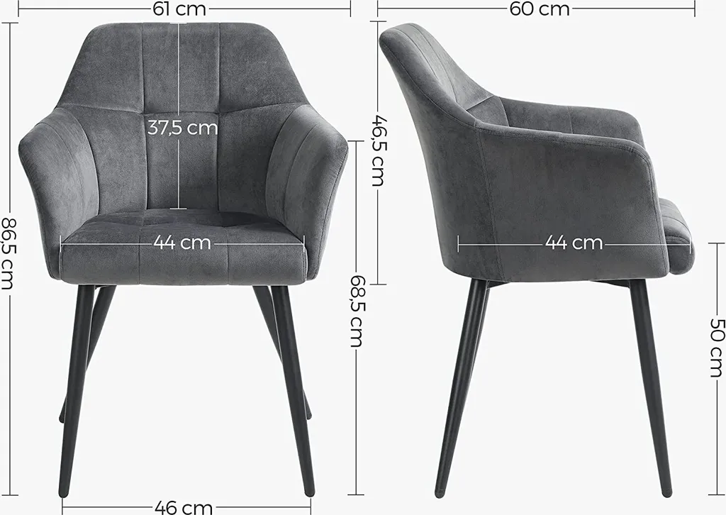 SONGMICS Esszimmerstuhl, Esszimmerstühle Samt , Hohe Rückenlehne Mit 46,5 Cm, Sitzpolster Mit 8 Cm Stärke, Bezug Aus Metallbeine, Küchenstuhl, Polsterstuhl, Grau LDC071G01