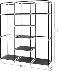 SONGMICS Kleiderschrank, Faltschrank, Stoffschrank, Faltbare Garderobe Mit 2 Kleiderstange, 175 X 150 X 45 Cm, Schwarz RYG12B
