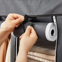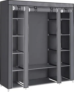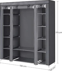 SONGMICS Kleiderschrank, Stoffschrank, 12 Mit Kleiderstange Und Ablagen, Stabiler Schrank, Für Schlafzimmer, Ankleidezimmer, 150 X 45 X 175 Cm, Grau LSF03G