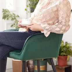SONGMICS Küchenstuhl Mit Armlehnen Sessel Polsterstuhl Samtbezug Max. 110 Kg LDC088C01