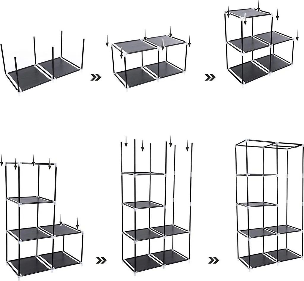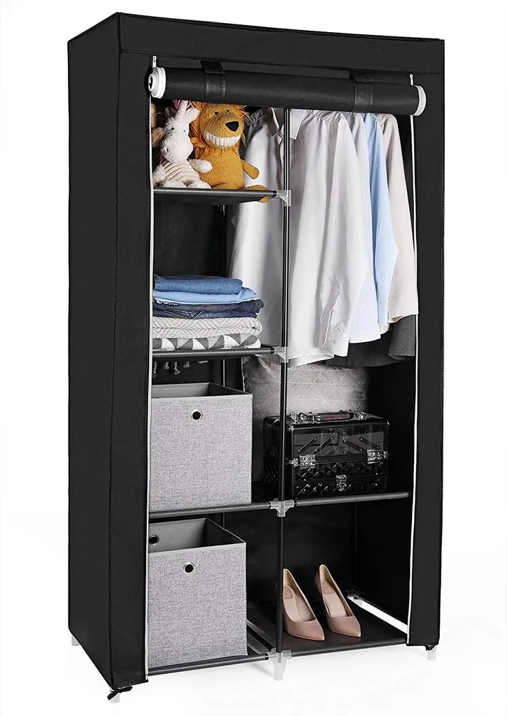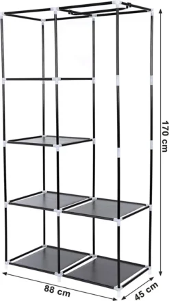 SONGMICS XL Kleiderschrank Mit 2 Stangen Stoffschrank Mit Tür 170 X 88 X 45 Cm Faltschrank Aus Vlies Gewebe Schwarz RYG84H