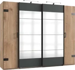 Stockholm Dreh- Und Schwebetürenschrank Mit Spiegel Plankeneiche / Grau, Breite:272 Cm