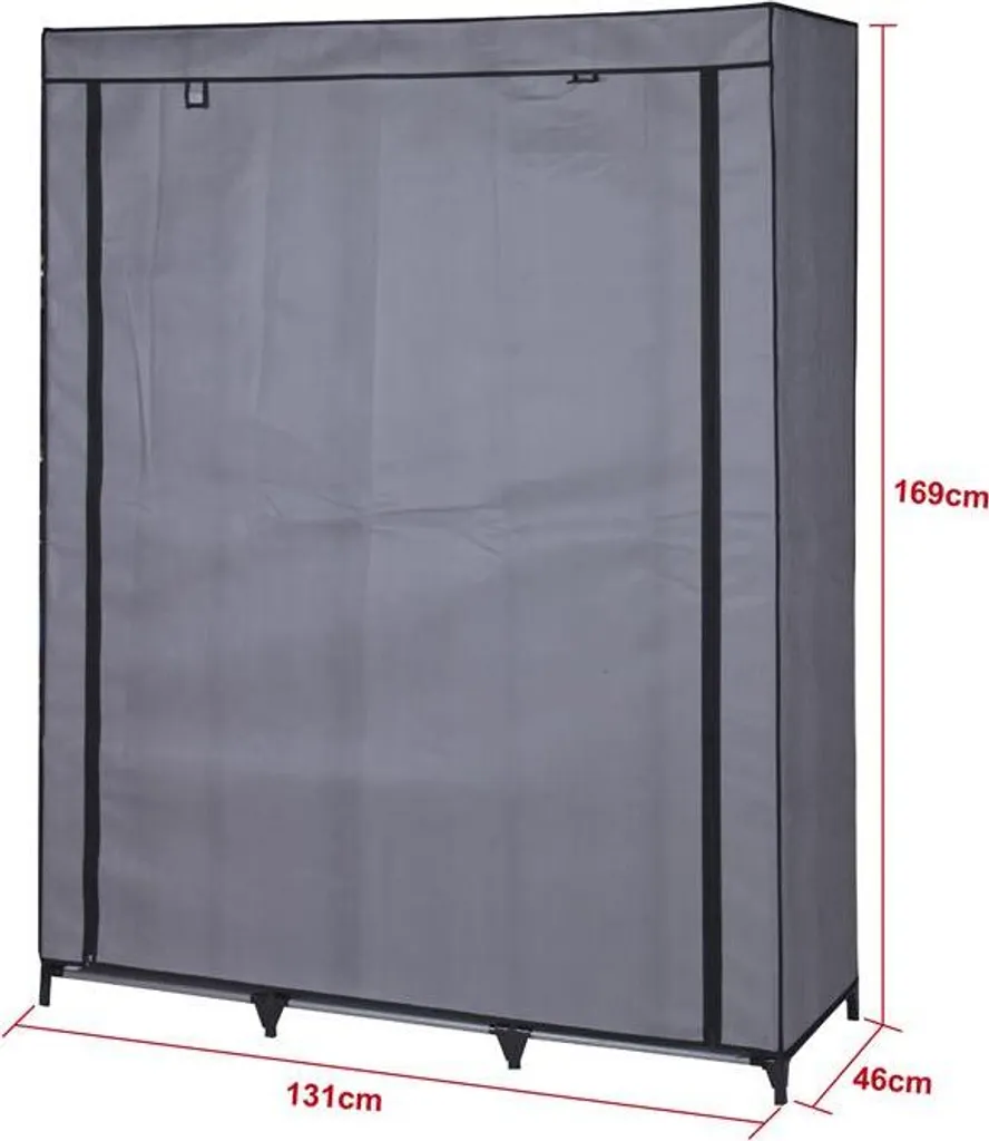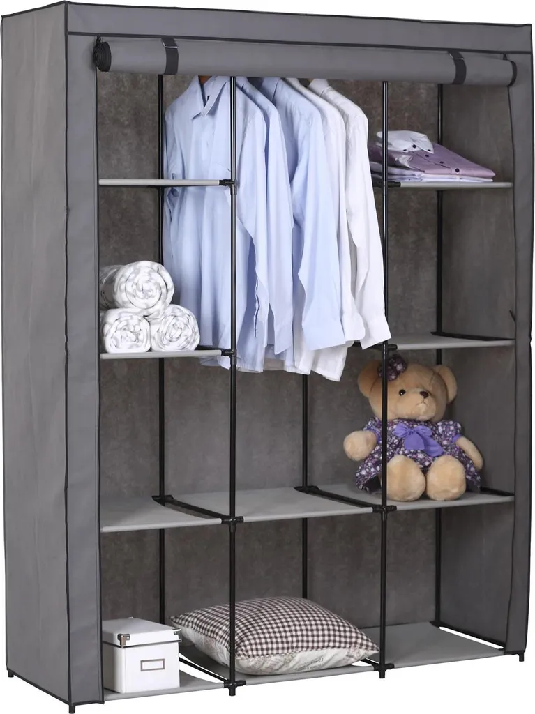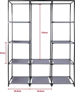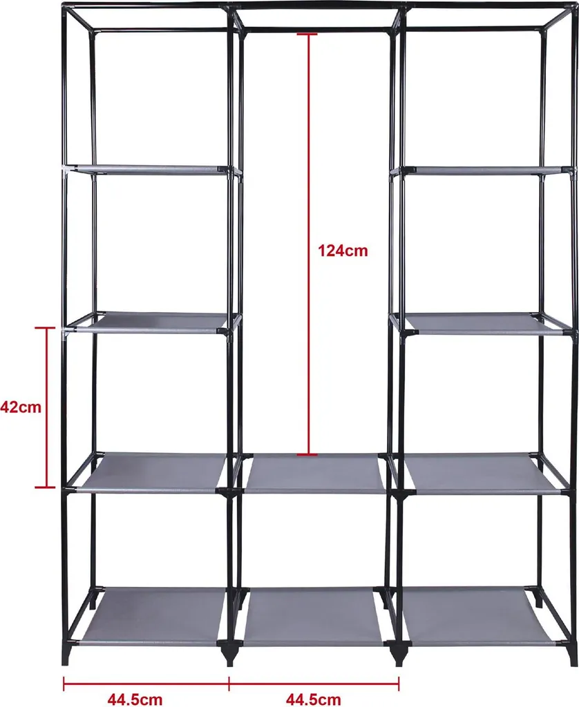 Stoffkleiderschrank Kellerregal Faltkleiderschrank STEVEN, Mit 1 Kleiderstange Und 9 Regalfächern, Inkl. Schutzhülle In Grau – 7 Verschiedene Aufbauvarianten