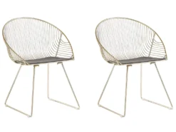 Stuhl 2er Set Gold Metall/Kunstleder 2 X Sitzkissen Modern