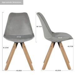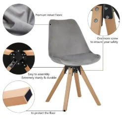 Stuhl Esszimmerstuhl Küchenstuhl 2er Set Grau Holz Beine Stoff Samt