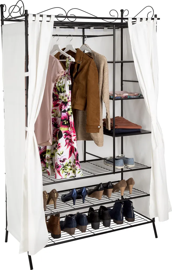 Tectake Metall-Garderobenschrank Mit Vorhang 112x207x57cm – Schwarz