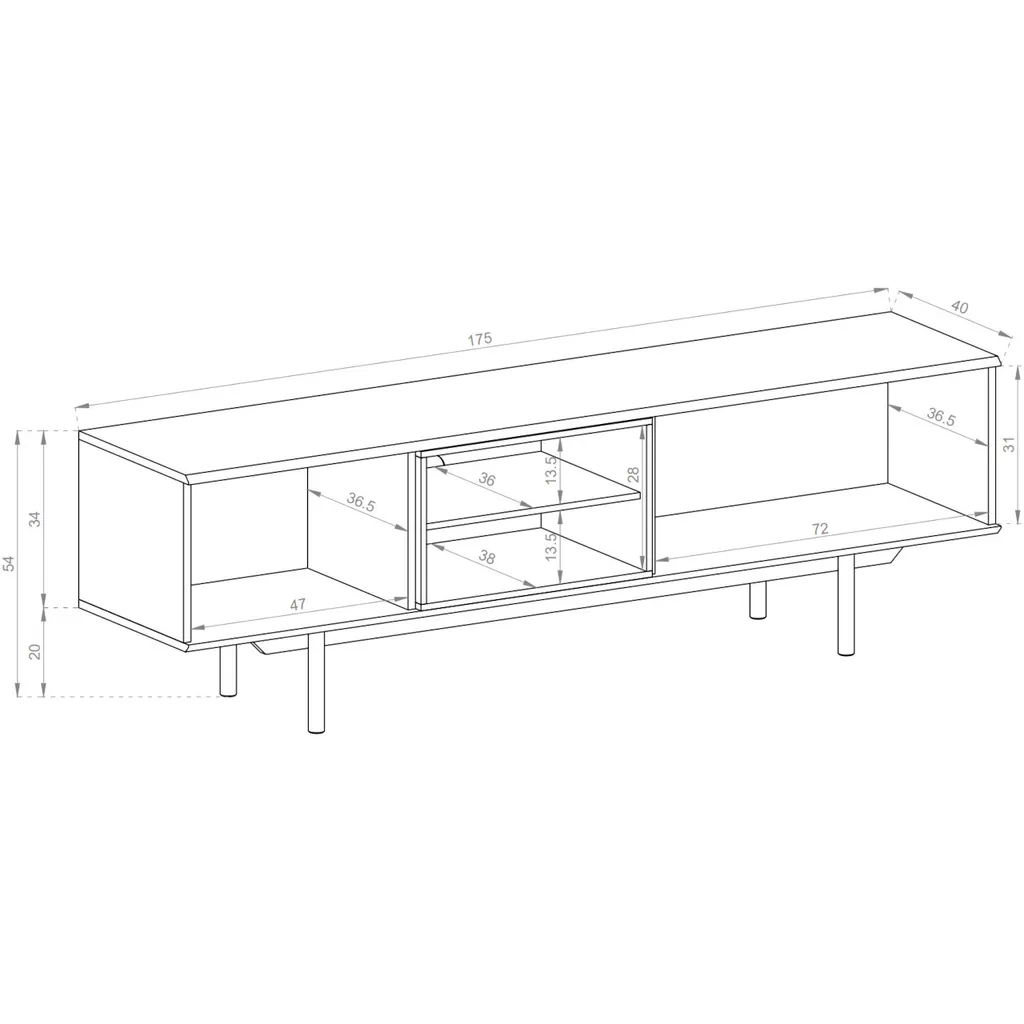 TV Lowboard Fernsehtisch Fernsehschrank INOX 02 Grau / Jackson Hickory 175 X 54 X 40cm