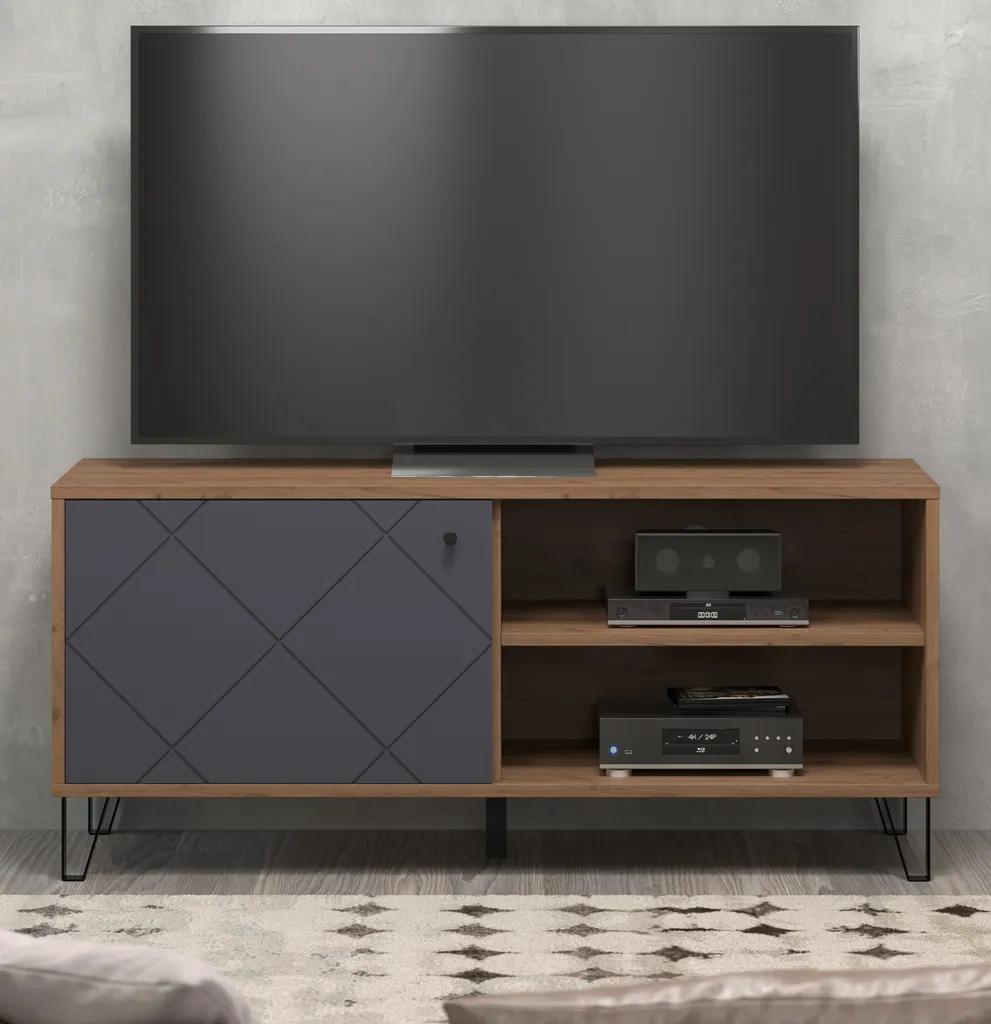TV-Lowboard „Montez“ In Graphite Grau Und Eiche Kraft Gold Flat-TV Unterschrank 123 X 56 Cm