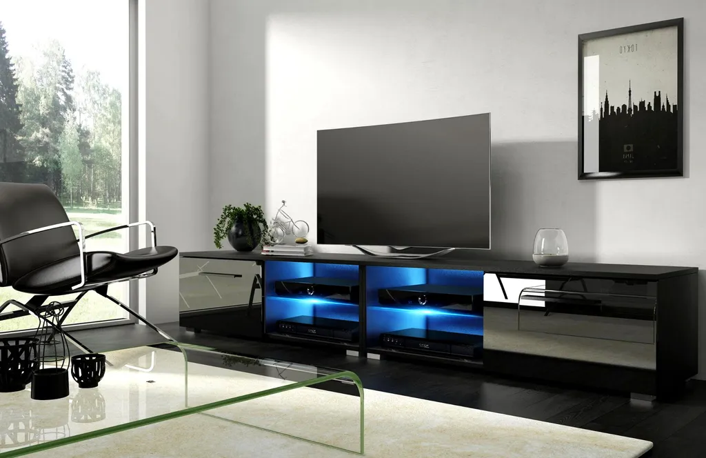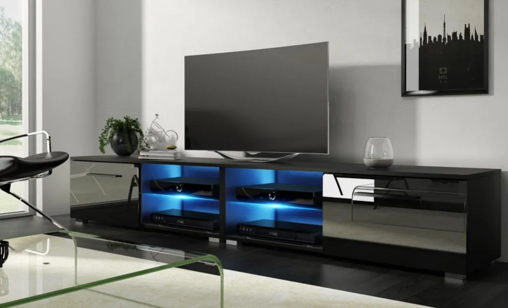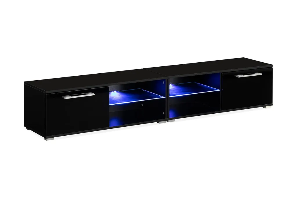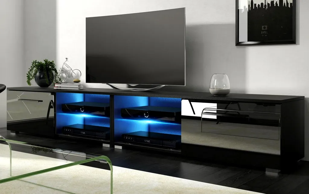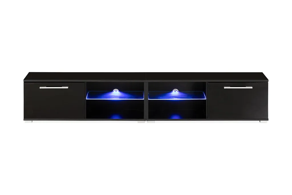 TV-Lowboard Moon Board In Hochglanz Schwarz TV-Unterteil XXL Flat-TV 200 X 36 Cm Fernsehtisch Inkl. LED Beleuchtung