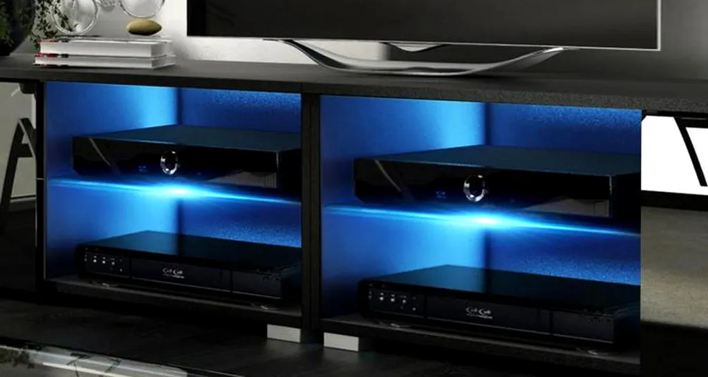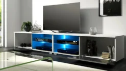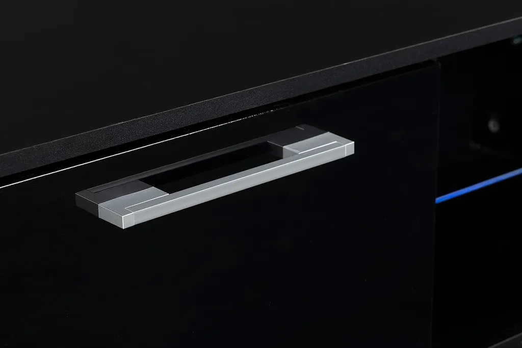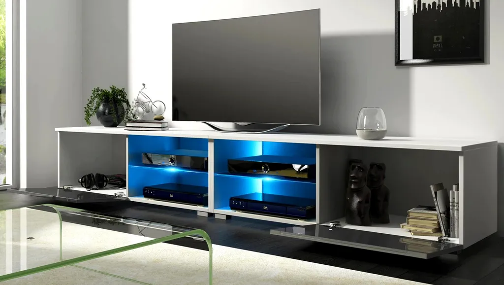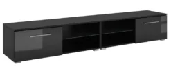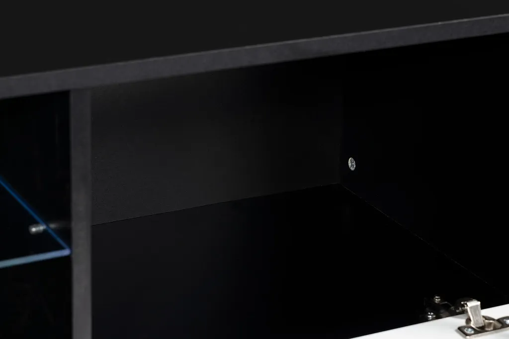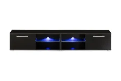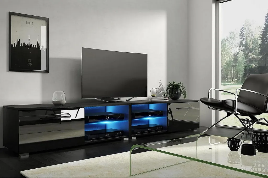 TV-Lowboard Moon Board In Hochglanz Schwarz TV-Unterteil XXL Flat-TV 200 X 36 Cm Fernsehtisch Inkl. LED Beleuchtung