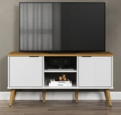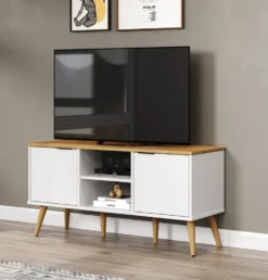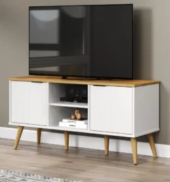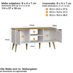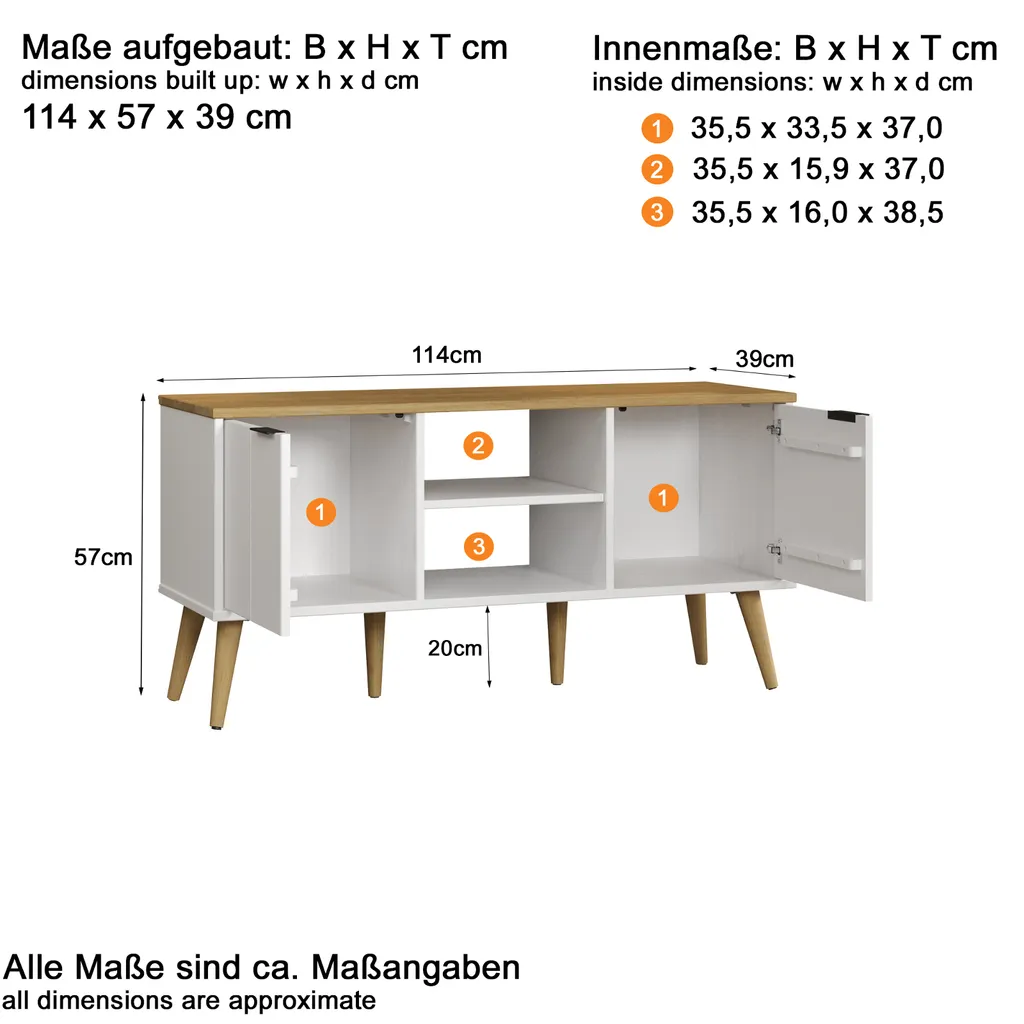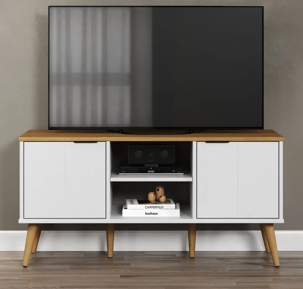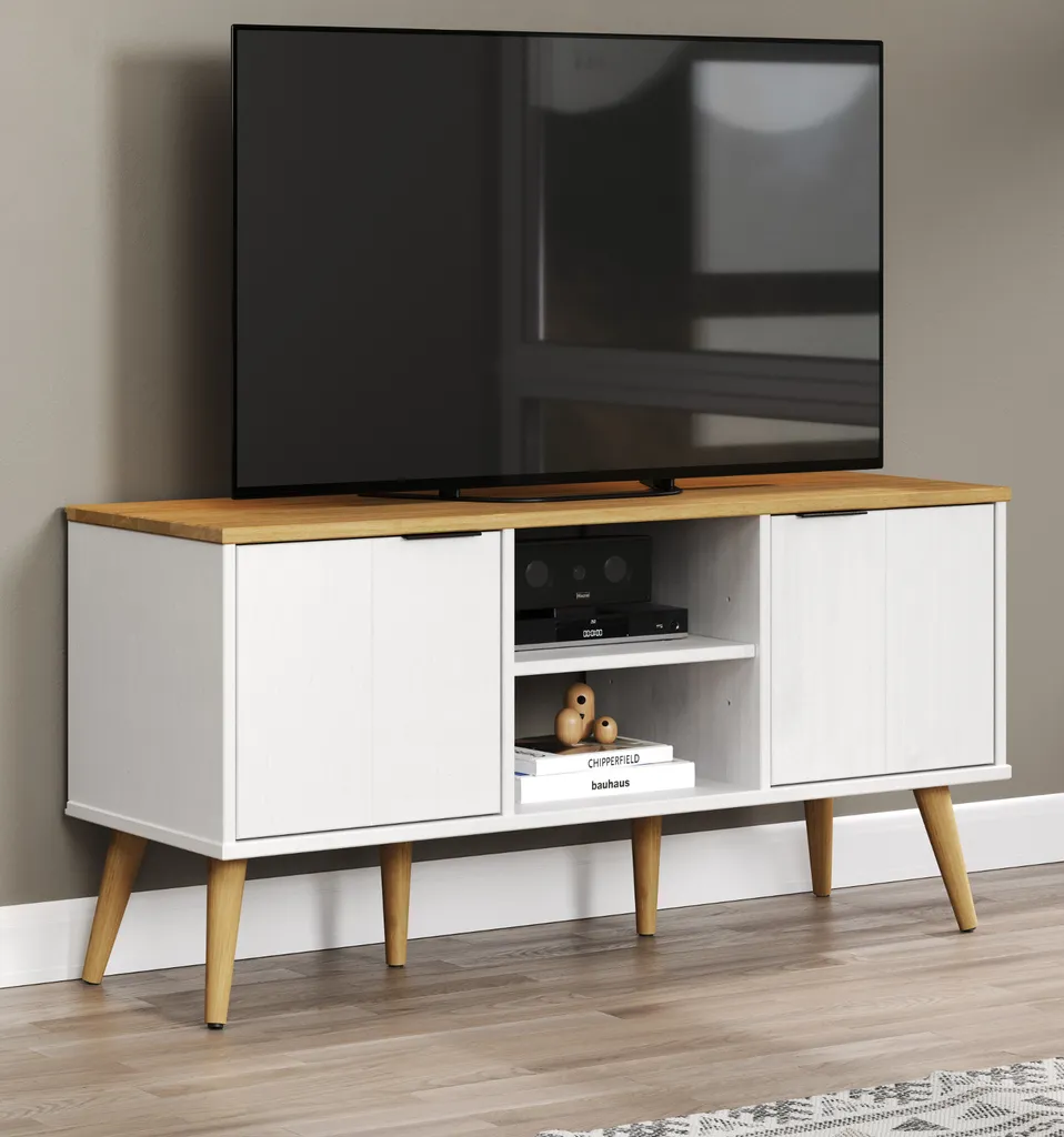 TV Lowboard Paterno In Kiefer Massiv Weiß Gewachst, Flat-TV Unterschrank Massivholz 114 X 57 Cm