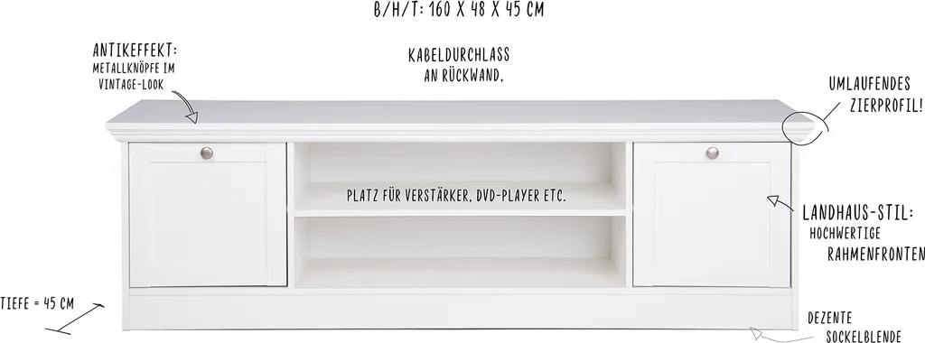 TV-Lowboard Unterschrank Fernsehtisch Sideboard HiFi Element Rack „Landsted II“