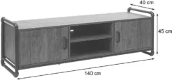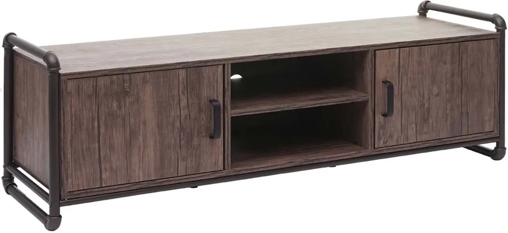 TV-Rack HWC-F58, Fernsehtisch Lowboard, Industrie-Design 3D-Struktur Staufach Braun 45x140x40cm