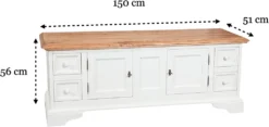 Tv Schrank 150x51x56 Cm, Tv Möbel Massivholz, Weiß/Holz